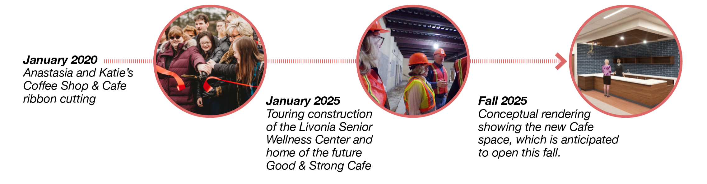The new cafe, coming this fall, will be located within the new Livonia Senior Wellness Center, adjacent to the Kirksey Recreation Center! Your support has helped us create meaningful jobs, build inclusive spaces, and pour purpose into every cup we serve.